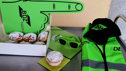 Für die Kolleginnen und Kollegen gab es im Anschluss der Aktion Krapfen, die von den Teilnehmenden gerne angenommen wurde.