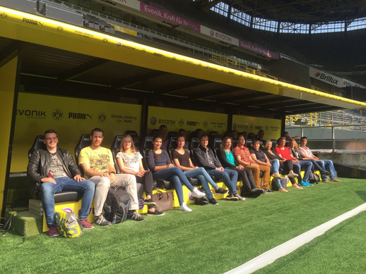Anschließend hat der OV Dortmund in Zusammenarbeit mit dem Kooperationspartner, der Signal Iduna - Bezirksdirektion André Lange, alle Nachwuchskräfte zu einer interessanten Stadionführung in das Westfalenstadion eingeladen. Im Anschluss wurde bei einer leckeren Currywurst im Strobels, der Location am Stadion, noch das eine oder andere Wissenswerte besprochen.
