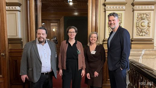 • Von links nach rechts: Christian Beisch (stellv. BDZ Bundesvorsitzender, Sina Imhof (innenpolitische Sprecherin der Grünen Fraktion in der Bürgerschaft, Helena Raspe (stellv. Vorsitzende mafianeindanke e.V.) und Jan Reinecke (Vorsitzender BdK Hamburg)