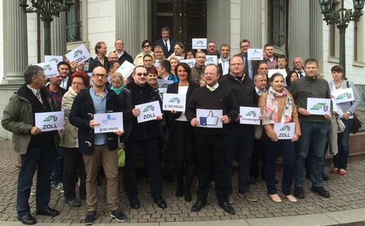 Am 28. April 2015 fand ein politischer Austausch zwischen hessischen Innenpolitikern und rund 50 Kolleginnen und Kollegen des BDZ im Wiesbadener Landtag statt. Dieser Termin wurde von einer öffentlichkeitswirksamen Aktion begleitet, bei der die BDZ-Mitglieder mit Transparenten für ihre Forderung nach Einführung der Eilzuständigkeit für Zollvollzugskräfte in Hessen warben (unser Bild).