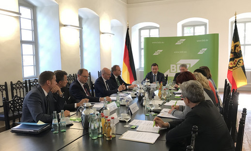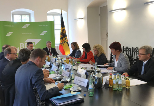 Zur Verbesserung der aktuellen Situation der Schwarzarbeitsbekämpfung richtete der BDZ am 19. September 2018 einen Runden Tisch mit u. a. hochrangigen Vertretern aus dem Bundestag – Antje Tillmann (CDU), Ingrid Arndt-Brauer (SPD), Beate Müller-Gemmeke (Bündnis 90/Die Grünen) und Susanne Ferschl (Die Linke) -, dem Staatssekretär beim Bundesfinanzministerium Dr. Rolf Bösinger sowie dem Vizepräsidenten der Generalzolldirektion, Hans Josef Haas, im Interimsrathaus in Weimar aus.