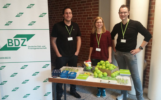 Am 9. Dezember 2015 präsentierte sich die BDZ-Jugend erstmals an beiden Stand-orten des Bildungs- und Wissenschaftszentrums der Bundesfinanzverwaltung (BWZ) in Münster mit ihrem beliebten Info-Stand und stand als fachgewerkschaftlicher Ansprechpartner für Fragen und Anregungen der Nachwuchskräfte zur Verfügung. Ein weiterer BDZ-Info-Stand wurde erstmals an der neuen BWZ-Liegenschaft am Aasee vor der dortigen Mensa aufgebaut und fand bei den Studierenden regen Zulauf. Viele trugen Fragen rund um die Ausbildung beziehungsweise das Studium an das BDZ-Team heran und überzeugten sich zudem von den Vorteilen einer Mitgliedschaft im BDZ.