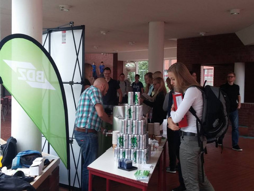 Nach der Mittagspause zog der Info-Stand vor den Mensabereich des BWZ und versorgte dort die Nachwuchskräfte mit Erfrischungen und Informationen. Viele Anwärterinnen und Anwärter intensivierten den frühmorgendlich begonnenen Dialog und hatten zahlreiche Fragen rund um den BDZ.