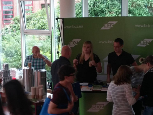 Die Nachwuchskräfte freuten sich hierbei nicht nur über den Kaffee und die Süßigkeiten, sondern waren sichtlich froh, dass sie nach dem kurzen Einführungspraktikum direkt wieder Ansprechpartnerinnen und Ansprechpartner des BDZ vor Ort fanden, die offen gebliebene Fragen schnell und umfassend klären konnten.