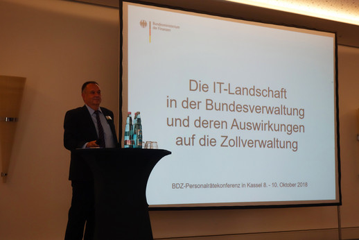 Über 140 Personalräte des BDZ und hochrangige Gäste aus dem Bundesministerium der Finanzen (BMF) sowie der Generalzolldirektion (GZD) folgten der Einladung zur bundesweiten Personalrätekonferenz des BDZ vom 8. bis 10. Oktober 2018 in Kassel. Die Tagung stand unter dem Gesichtspunkt der Herausforderungen und Chancen des Stellenzuwachses für die Zollverwaltung in den kommenden Jahren sowie der zunehmenden Digitalisierung der Arbeitsabläufe des Zolls.