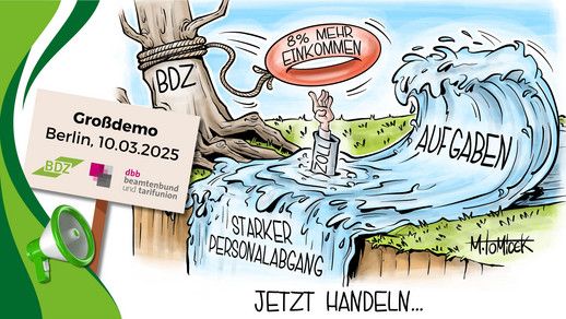 Der dbb beamtenbund und tarifunion ruft alle betroffenen Beschäftigten in Berlin am 10. März 2025 zu einem Warnstreik mit Großdemonstration und Kundgebung auf. Der BDZ unterstützt diesen Protest und ruft auch alle Beamtinnen und Beamten dazu auf, sich in ihrer Freizeit solidarisch zu zeigen.