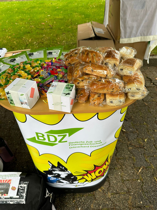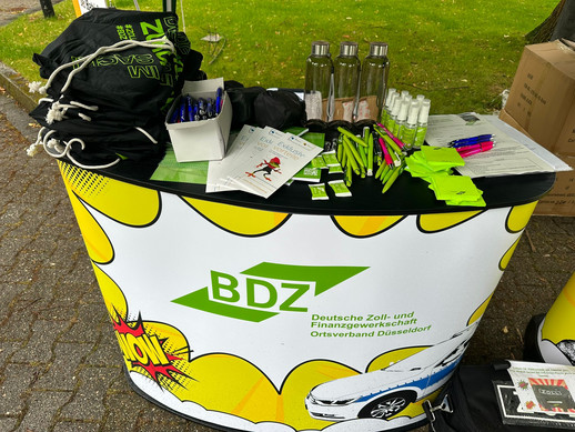 Am 02. August 2023 fand die diesjährige Begrüßung von 50 Neueinstellungen des gehobenen und mittleren Dienstes des HZA Düsseldorf, wie schon im Vorjahr, durch hoch motivierte Kollegen und Kolleginnen des OV Düsseldorf, auf dem Vorplatz des Factory Campus in Düsseldorf, unweit des HZA Düsseldorf, statt.
