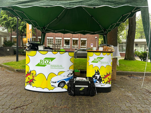 Ohne den von uns aufgestellten Pavillon wäre die Veranstaltung buchstäblich ins Wasser gefallen. So blieb es nur bei durchnässten BDZ Info Schreiben.