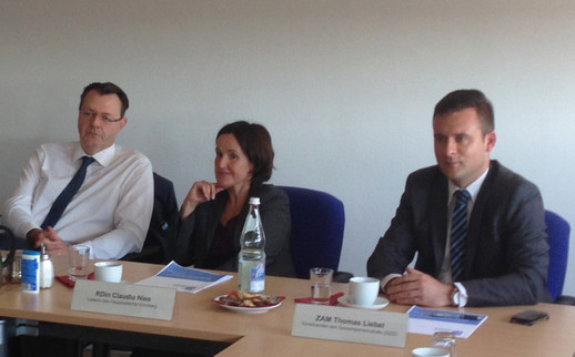 Die Bekämpfung der Schwarzarbeit hat viele Facetten: Scheinselbständigkeit, Ausländer, die ohne Aufenthalts- und Arbeitsgenehmigung arbeiten, Arbeitsverleiher, die ohne Erlaubnis Arbeitskräfte illegal verleihen oder Arbeitslose, die Bezüge beziehen und nebenbei arbeiten und vieles andere mehr. Die Finanzkontrolle Schwarzarbeit verfolgt daher einen ganzheitlichen Prüfungsansatz. Das heißt, wenn ein Arbeitgeber geprüft wird, sind dabei alle in Betracht kommenden Prüfaufgaben der FKS in einer Prüfung zu bearbeiten. Oft sind langwierige Auswertungen und schwierige Geschäftsunterlagenprüfungen nötig. Michael Frieser hinterfragte u. a. die Zusammenarbeit auf dem Gebiet der Schwarzarbeitsbekämpfung mit anderen Behörden sowie die Prüfungsabläufe der FKS, bei der die Kontrolleure regelmäßig laufbahnübergreifend gleichwertigen Tätigkeiten nachgehen. Ein Umstand, der nach einer zentralen Forderung des BDZ dringend im Rahmen einer flexibleren Dienstpostenbewertung berücksichtigt werden sollte. Die FKS Nürnberg erledigte im vergangenen Jahr straf- und bußgeldrechtliche Ermittlungen mit einer Schadenshöhe von über 9 Millionen Euro. Liebel bekräftigte am Rande der Diskussionen die Forderung des BDZ von insgesamt 2.500 zusätzlichen Planstellen für die FKS, die sich nach gewerkschaftlichen Berechnungen u.a. durch die zusätzlichen Aufgaben nach dem Mindestlohngesetz ergeben.