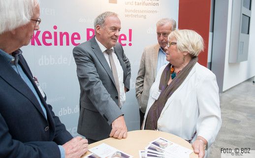 Im Rahmen mehrerer Vorträge und einer Podiumsdiskussion wurden die sich stellenden Herausforderungen dargestellt und Lösungskonzepte gesucht. Redner waren u.a. der ehemalige Bundesarbeitsminister und jetzige Vorsitzende der Bundesarbeitsgemeinschaft der Senioren-Organisationen (BAGSO) Franz Müntefering sowie Prof. Dr. Gisela Färber von der Deutschen Universität für Verwaltungswissenschaften Speyer. Für den BDZ nahmen der BDZ-Bundesvorsitzende Dieter Dewes sowie die Zweite Vorsitzende der dbb bundesseniorenvertretung Uta Kramer-Schröder teil.