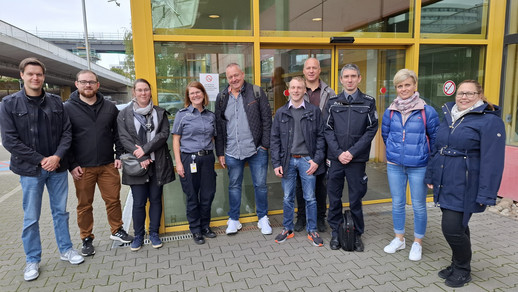 Mitglieder des StFA Zölle und Steuern zusammen mit Vertretern des Zollamtes (von links): Daniel Coopmanns, Benedikt Schreiner, Kay Hoffert, Frau Hagen (ZA FFM Flughafen), Alfred Benischke, Kilian Reimann, Carlo Köhler, Herr Klein (Leiter ZA FFM Flughafen), Victoria Lis, Diana Beisch