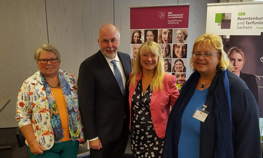 Auf der Herbstsitzung der dbb bundesfrauenvertretung vom 28. bis 30. September 2018 in Dresden berieten sich die Frauenvertreterinnen der dbb Gewerkschaften mit Vertreterinnen und Vertretern des SBB Beamtenbund und Tarifunion Sachsen und der sächsischen Landesregierung zur Reform der sächsischen Gleichstellungsgesetzgebung im Rahmen der dbb Initiative „Zeitgemäße Personalentwicklung im öffentlichen Dienst“. Als Mitglied der Hauptversammlung der dbb Frauen beteiligte sich Gabriela Raddatz, Vorsitzende des Ständigen Ausschusses Frauen, an der Debatte. Darüber hinaus nahmen vom BDZ Sabine Marz über den SBB sowie Uta Kramer-Schröder als Ehrenmitglied der Hauptversammlung an der Veranstaltung teil.