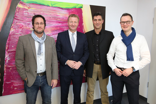 v.l. Stefan Walter (BDZ Westfalen), NRW-Innenminister Ralf Jäger (SPD), Jörg Riesenweber (BDZ Westfalen) und Sebastian Teßmer (BDZ Westfalen)