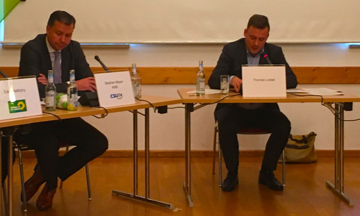 Der innenpolitische Sprecher der CDU/CSU-Bundestagsfraktion, Herr Stephan Mayer MdB (CSU), würdigte im Rahmen einer politischen Podiumsdiskussion des Gewerkschaftstags des BDZ Bezirksverbandes Südbayern am 28. November 2017 im oberbayerischen Teisendorf die beträchtliche Leistungsbilanz der Zöllnerinnen und Zöllner. MdB Mayer zeigte sich beeindruckt von den vielfältigen Aufgabenschwerpunkten des Zolls, der neben seiner Rolle als wichtigste Einnahmeverwaltung einen herausragenden Beitrag im Kampf gegen die Organisierte Kriminalität und damit für die Innere Sicherheit Deutschlands leistet. Daneben stellte der Innenpolitiker eine deutliche Stärkung des Zolls im Laufe der kommenden Legislaturperiode in Aussicht.