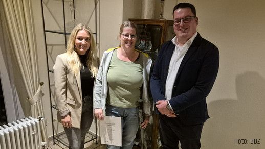 Feierlich wurde es bei der Mitgliederehrung. Der Vorsitzende des Ortsverbands Paderborn dankte Nadine Post und René Klinger für 25 Jahre Mitgliedschaft im BDZ. Er übereichte die Dankurkunde und die Ehrennadel.