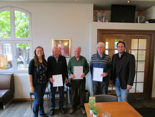 Nach der Entlastung des Vorstands wurden die Kollegen Karl-Dieter Bepler, Karl-Joachim Wiechmann und Klaus-Jürgen Klinkmann für ihre 60jährige Mitgliedschaft im BDZ geehrt. Der Vorstand des Ortsverbands überreichte neben der Ehrenurkunde und der Ehrenmedaille auch einen erstklassigen edlen Tropfen als Ehrengabe.