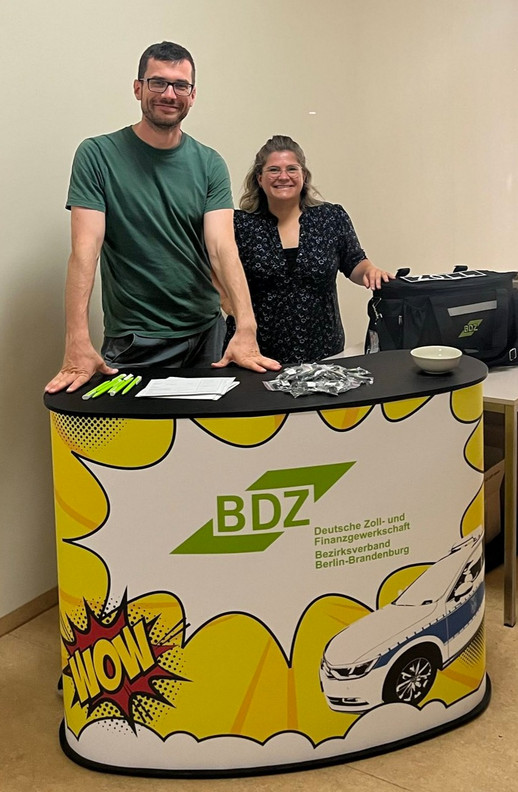 Davon werden 19 Nachwuchskräfte ihr Studium in Münster und 60 ihre Ausbildung in Plessow antreten. Der Ortsverband Berlin stellte den BDZ mit einem Stand vor und stellte "Nervenfutter" für alle bereit - können die ersten Tage in einer Behörde doch ziemlich aufregend sein.