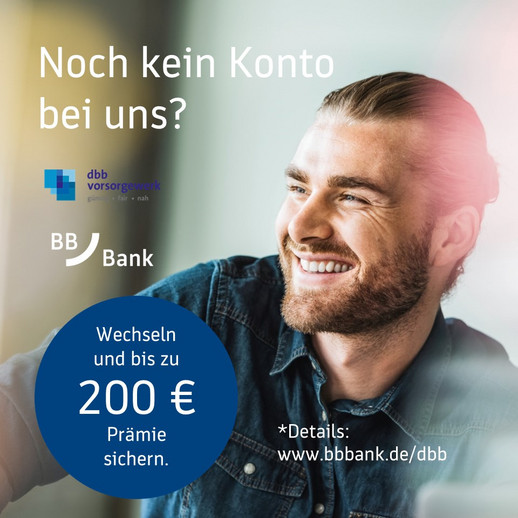 Die BBBank, als Kooperationspartner des BDZ, bietet für BDZ-Mitglieder einen besonderen Neukundenvorteil an. Mit einem zusätzlichen Bonus von 50 Euro steigt das Startguthaben bei Kontoeröffnung auf 200 Euro!