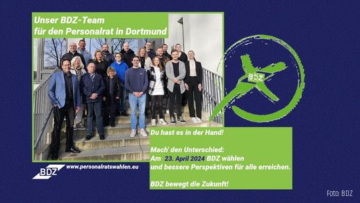 Die Dortmunder Kandidatinnen und Kandidaten für den örtlichen Personalrat. Am 23. April 2024 BDZ wählen!