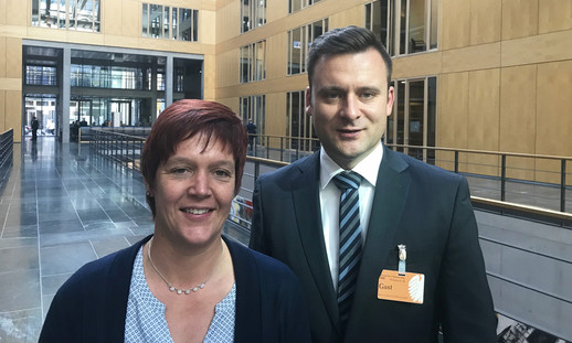 Die Forderung nach einer schlagkräftigeren Finanzkontrolle Schwarzarbeit (FKS) stand im Mittelpunkt eines informativen Austauschs der Bundestagsabgeordneten Susanne Ferschl (Die Linke) und dem stellvertretenden BDZ Bundesvorsitzenden, Thomas Liebel im Deutschen Bundestag in Berlin. Das Gespräch fand am 16. Oktober 2018 statt und damit im unmittelbaren Anschluss an dem vom BDZ ausgerichteten Runden Tisch zur Bekämpfung der Schwarzarbeit und illegalen Beschäftigung durch die FKS in Weimar, an dem auch MdB Susanne Ferschl teilnahm.