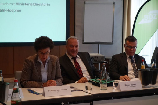 Mit Frau Dr. Stahl-Hoepner wurden die Themen Dauer der Beihilfebearbeitung beim BADV und mögliche Lösungsansätze, Anwendung der Sonderurlaubsverordnung nach deren Neufassung, Kosten für Personalräte und auswärtige Sitzung sowie die Verlagerung des BADV in den Geschäftsbereich des BMI diskutiert.
