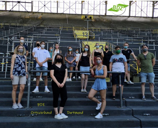 Auch in diesem Jahr wollte der Ortsverband Dortmund nicht darauf verzichten, die neu eingestellten Nachwuchskräfte des HZA Dortmund zu begrüßen und hat daher zu einem Treffen am Samstag, den 08. August eingeladen. Unter Beachtung der Hygiene- und Abstandsregeln besichtigten die Teilnehmer/-innen den Signal-Iduna Park, in einem sogenannten „Sommersparziergang“, denn geführte Rundgänge werden derzeit nicht angeboten. Bereits zuvor haben alle neu eingestellten Nachwuchskräfte das Begrüßungsgeschenk des BDZ erhalten, dass viele Informationen rund um die Ausbildung bereithält.