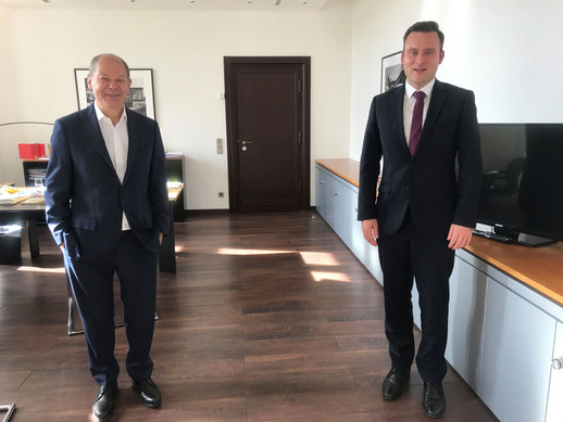 Thomas Liebel im Gespräch mit Bundesfinanzminister und Vizekanzler Olaf Scholz
