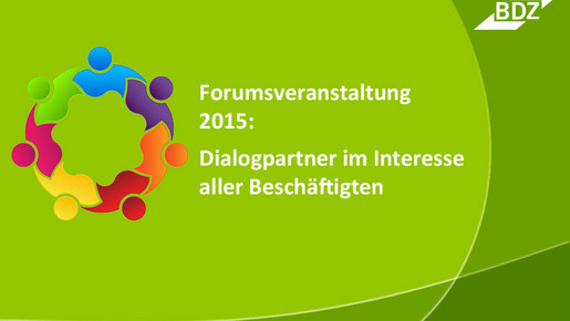 Mit der Vorstellung der Ergebnisse der Foren wurde die BDZ-Forumsveranstaltung „BDZ – Dialogpartner im Interesse aller Beschäftigten“ am 13. Oktober 2015 in Berlin fortgesetzt. In vier Foren…