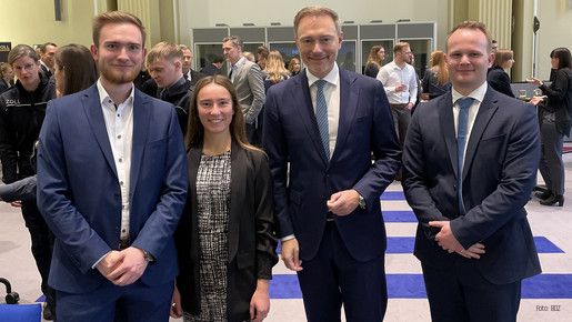 Bundesfinanzminister Christian Lindner und die Präsidentin der Generalzolldirektion, Colette Hercher, luden die leistungsstärksten Laufbahnabsolventinnen und -absolventen 2023 zu einer…