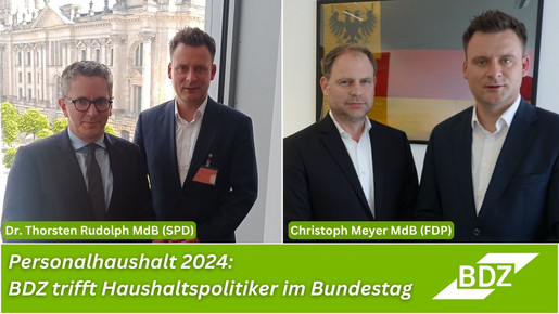 Am 25.05.2023 traf sich der BDZ Bundesvorsitzende Thomas Liebel mit den Berichterstattern der Fraktionen SPD und FDP für den Personalhaushalt der Bundesfinanzverwaltung. Bei Dr. Thorsten…